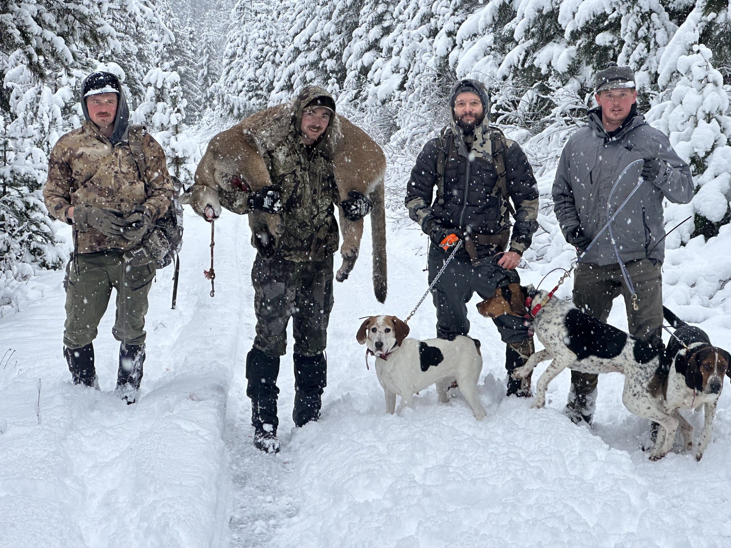 We had a 100% success rate during this past mountain lion season! Snow conditions cooperated, and our experienced houndsmen and guides tracked and treed beautiful cats.